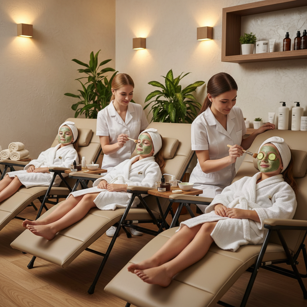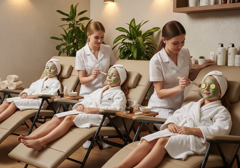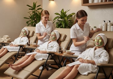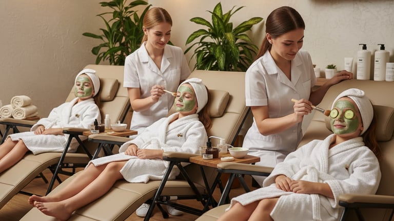 Inclus : 2 activités au choix (Maquillage artistique, Massage visage ou Massage dos) + Atelier des sens et dégustation de jus de fruits.
